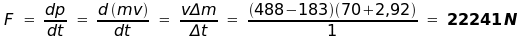 Obsérvese que en esa expresión se ha puesto que la velocidad de los gases es la diferencia entre la velocidad de expulsión y la velocidad del avión, y que la masa de gases expulsada es la suma de la del aire absorbido más la del combustible quemado. (B) La potencia del motor que puede producir ese impulso vendrá dada por